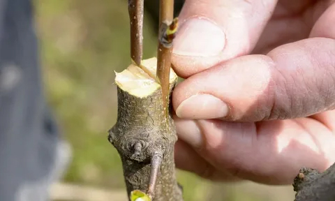 Делается, когда кора легко отделяется от древесины — обычно весной, во время активного движения соков. На подвое делают надрез коры и аккуратно вставляют под неё черенок с косым срезом. Этот метод хорошо подходит для толстых ветвей, где невозможно сделать аккуратный расщеп.