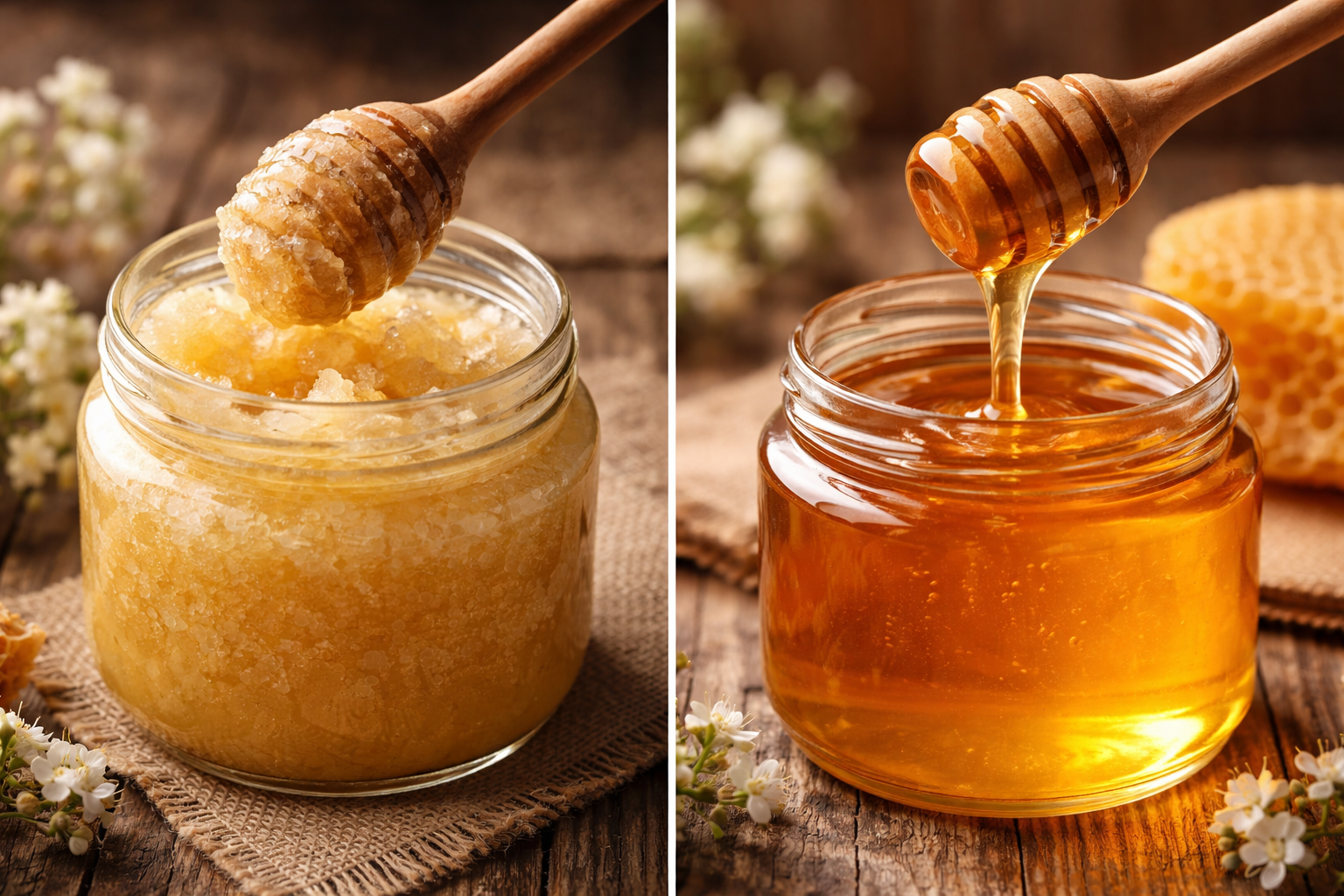 Засахаренный мёд — это не признак порчи, а естественный процесс, который происходит с натуральным продуктом со временем. Его вкус и польза при этом сохраняются, меняется лишь консистенция.
