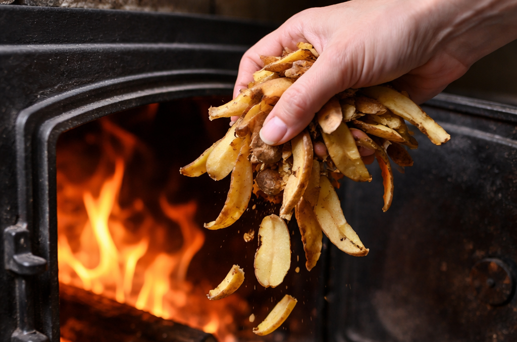 Существует простой домашний способ, который помогает ослабить слой сажи без применения химии. Для этого используют сухие картофельные очистки. Их нужно бросить прямо в хорошо разогретую печь поверх горящих дров.